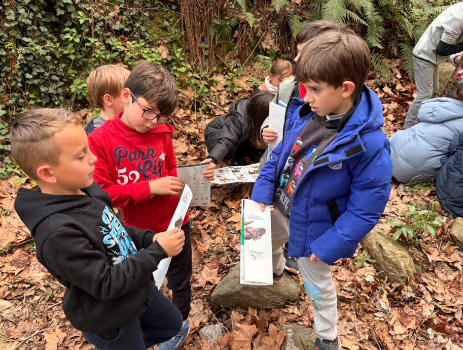 A la segona sesió ens plantegem què envolt i interactua amb la nostra riera. Anem a veure les petjades properes a la riera (trobem empremtes de porc senglar). A partir d’aquesta pregunta, ens endinsem al coneixement del bosc de riera, descobrint la importància d’aquest ecosistema i la gran diversitat de vida que acull.