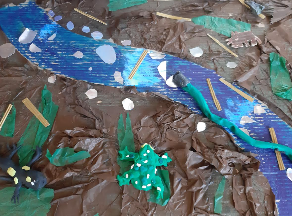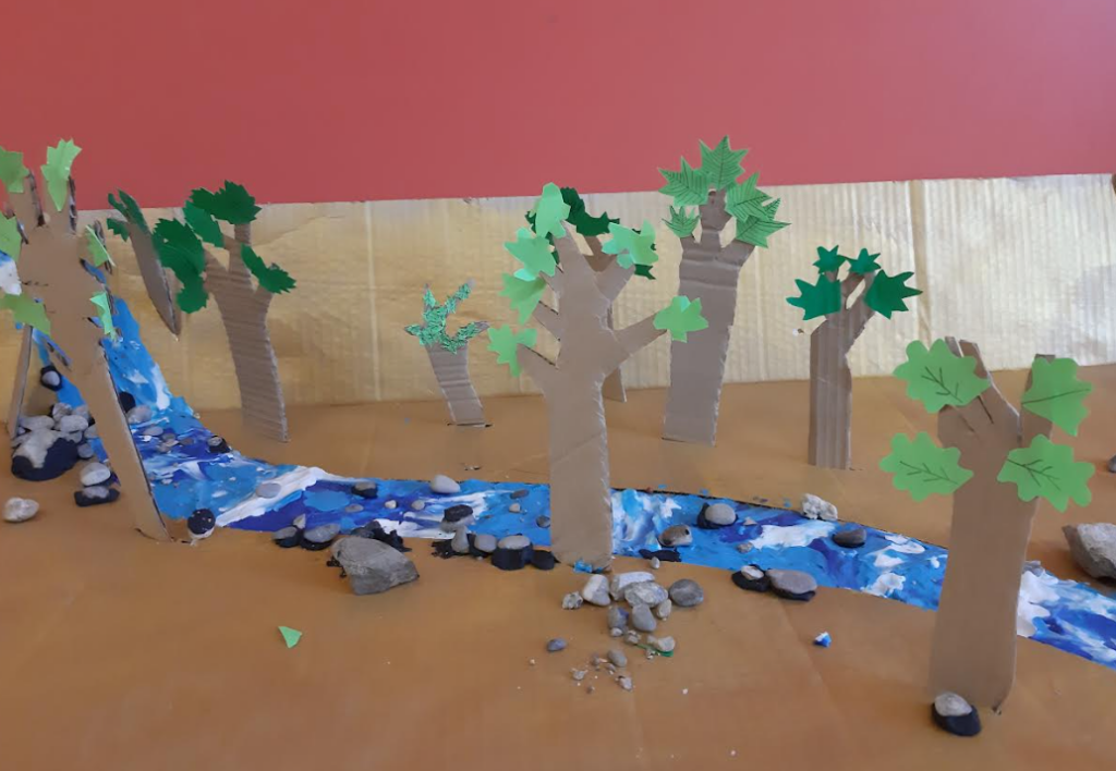Observem que la riera no és només aigua, sinó un espai ple de relacions entre éssers vius. Hi hem trobat gran varietat de plantes pròpies del bosc de ribera i també molts animals que viuen a l’aigua o als seus voltants. Ens proposem fer tres maquetes amb grup cooperatiu i cada grup investiga amb les guies de bosc.
