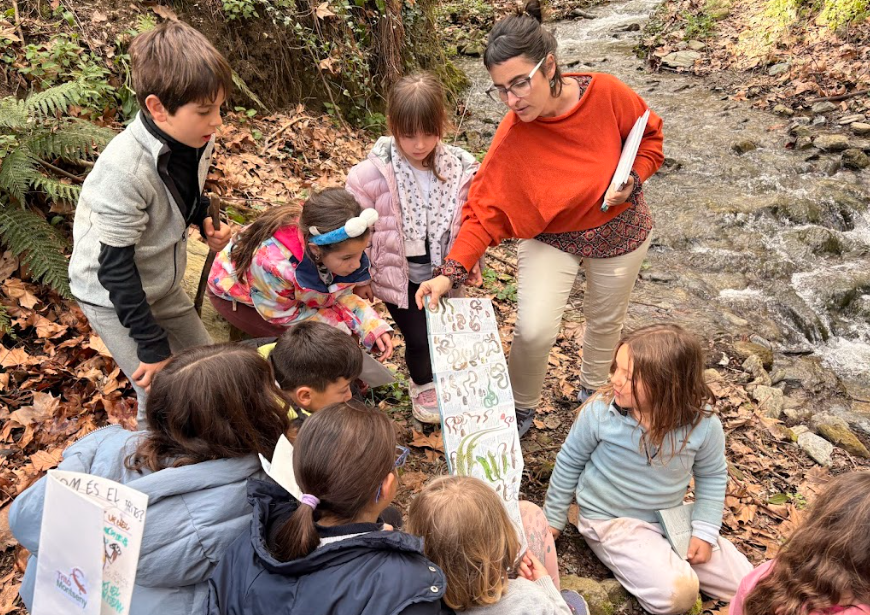 AQUESTA EXPERIÈNCIA HA ESTAT UNA GRAN OPORTUNITAT PER TREBALLAR LES DIFERENTS FAMÍLIES D’ANIMALS. HEM CONEGUT MAMÍFERS QUE S’ACOSTEN A LA RIERA PER BEURE O ALIMENTAR-SE, AMFIBIS QUE DEPENEN DE L’AIGUA PER VIURE, RÈPTILS QUE HABITEN A LES SEVES VORES, I TAMBÉ UNA GRAN VARIETAT DE MICRO I MACROINVERTEBRATS QUE VIUEN DINS L’AIGUA I QUE ENS AJUDEN A ENTENDRE LA QUALITAT DEL SEU ECOSISTEMA.