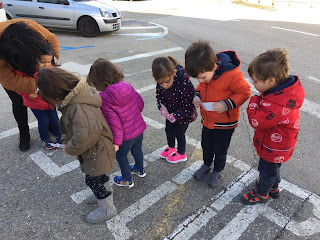 Ja fa uns dies que a la classe de P3 observem els nostres noms, si són curts o llargs, comptem quantes lletres tenen, quines lletres coneixem, per quina lletra comença… i avui  hem decidit sortir al carrer per veure si a fora al carrer també hi ha lletres. Mireu les fotos i veureu quin descobriment que hem fet!