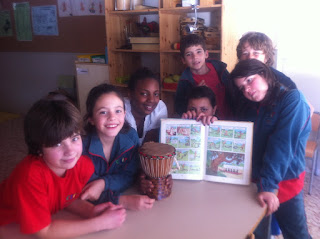 L’Artur amb el seu RebabAlumnes de C. S. amb el comic de Tintín i Djembé.