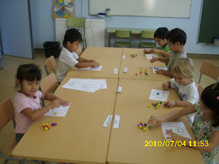 Els nens i nenes de la classe de les Coloraines estem aprenent a contar gràcies a les peixeres de colors.