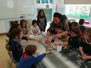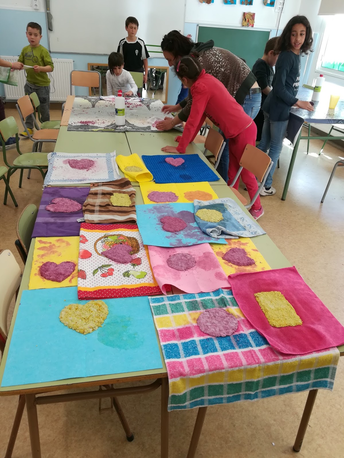 La mare de l’Ayur va venir a fer un taller de reciclatge de paper. Fins i tot va portar colorants naturals.