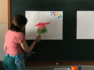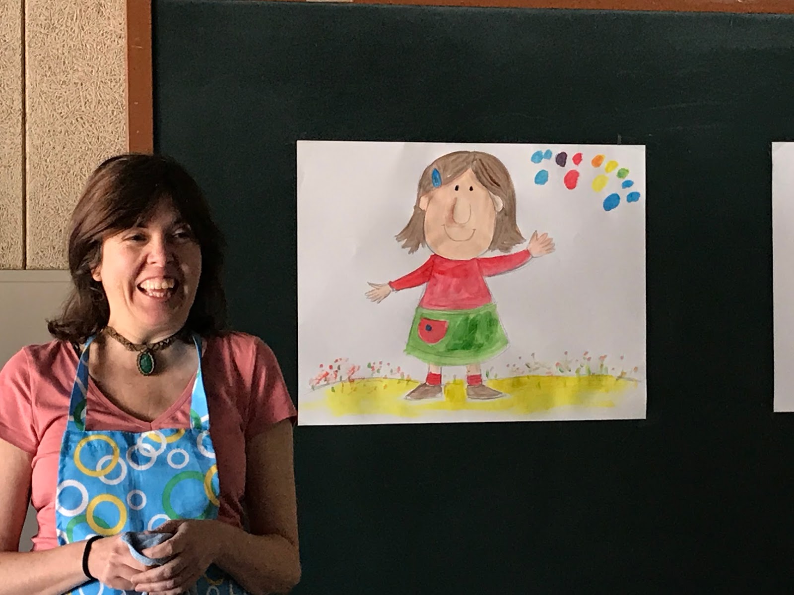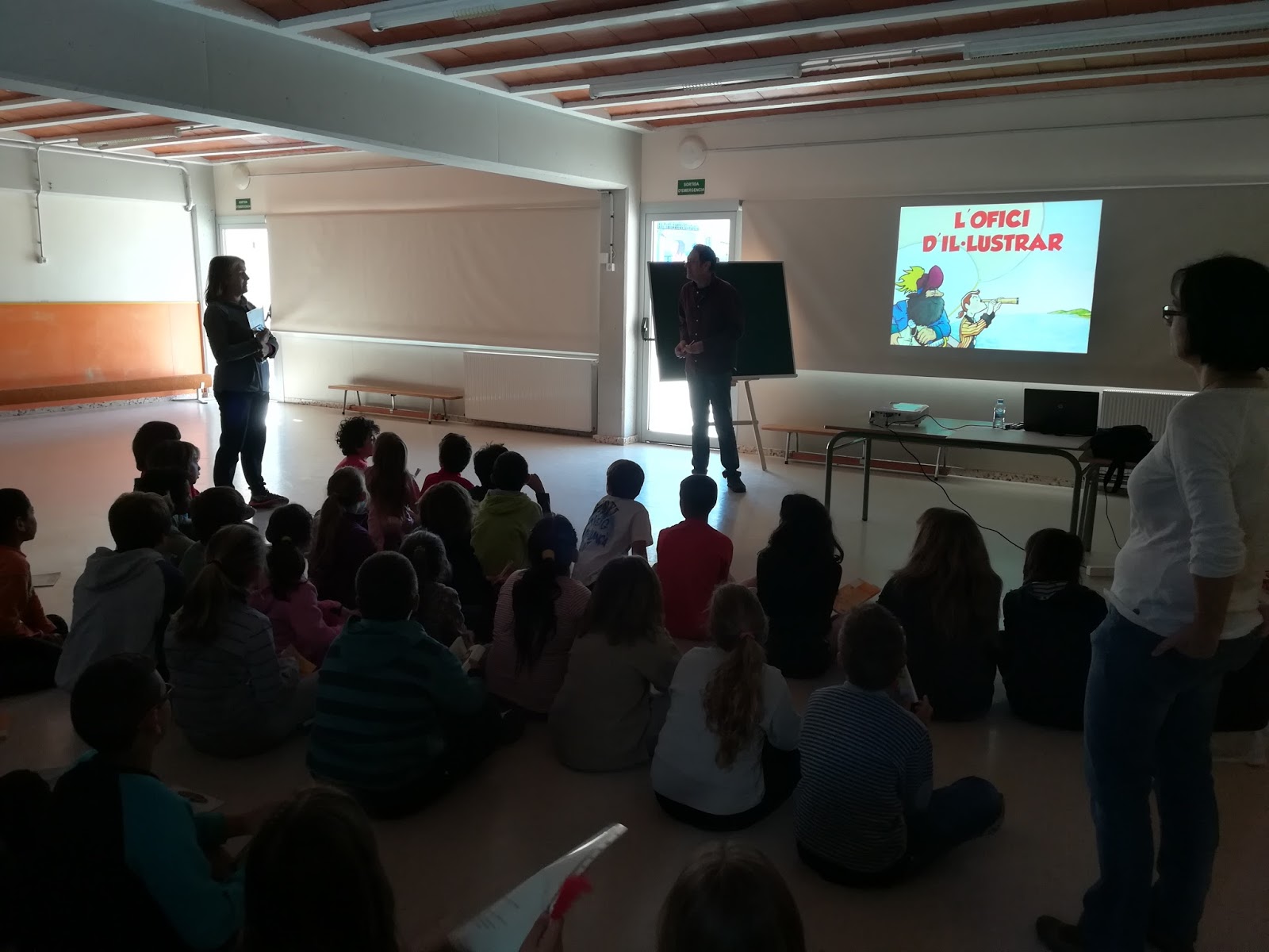 Van venir 2 il·lustradors que ens van explicar com és la seva feina i ens van fer un dibuix.