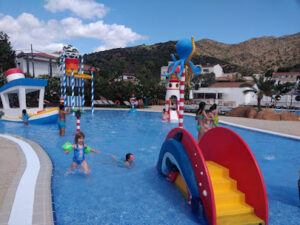 Després, hem agafat motxilles i hem anat totes i tots cap a la piscina del Càmping! Ens ho hem passat pipa a l’aigua i als tobogans. Mireu, mireu…!