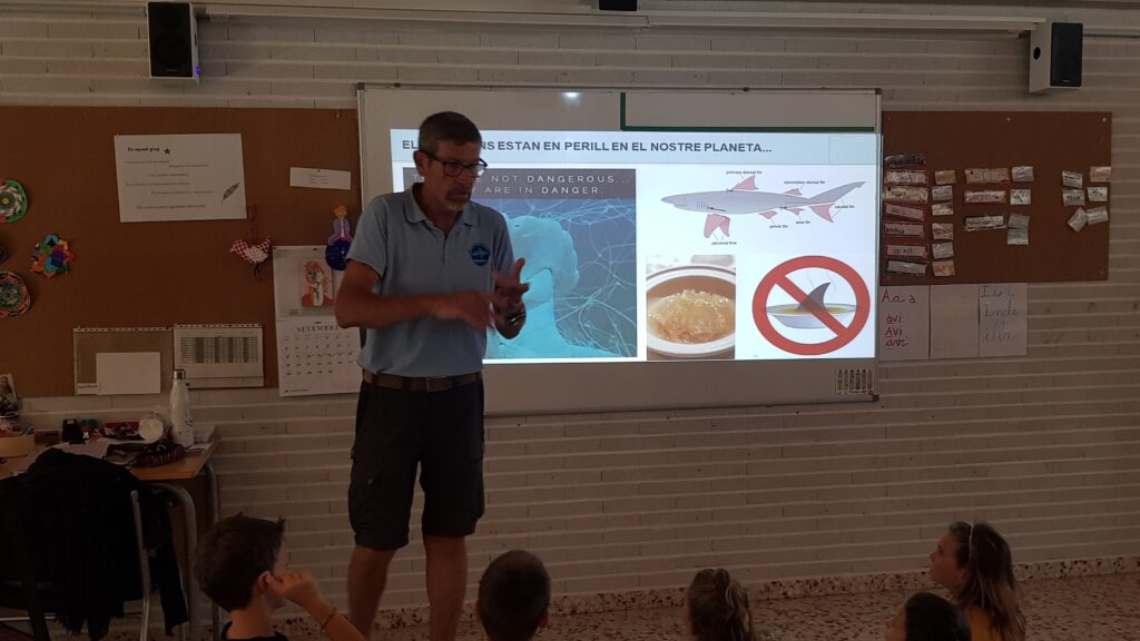 En la seva visita a l’escola, hem pogut aprendre un munt de coses sobre els taurons. Hem conegut les seves característiques, la diferència entre ells i les rajades, el seu hàbitat natural i l’amenaça que som els humans cap a ells ja sigui per tema de pesca o per accidents. Hem apres que tot i la mala fama que tenen degut a les pel·lícules, estan en perill d’extinció arreu del món.