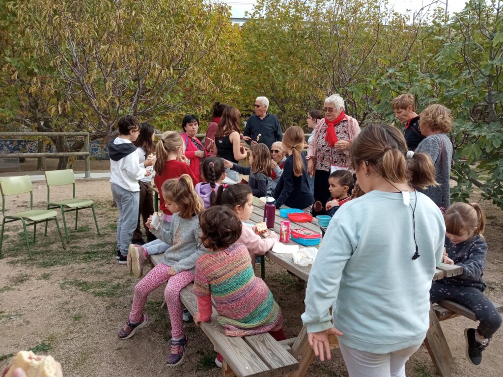 El passat divendres van venir els avis i àvies d’alguns/es alumnes, en total érem 32 persones. Els hi vam preparar un esmorzar ven bo: pa amb tomàquet, pernil i formatge, galetes, i brotxetes de plàtan, pera i poma. Ens van explicar anècdotes i coses de la seva infància i adolescència, també ens van explicar que abans tot era diferent, les escoles estaven separades per a nois i noies, que els hi donaven llet d’Amèrica a l’escola, que l’escola estava molt diferent, que els castigaven donant cops, fins hi tot, que anaven a l’escola els dissabtes. Va ser una jornada molt interessant.