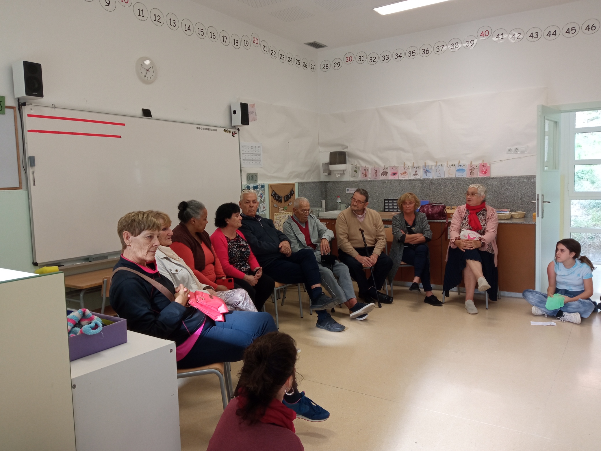 El passat divendres van venir els avis i àvies d’alguns/es alumnes, en total érem 32 persones. Els hi vam preparar un esmorzar ven bo: pa amb tomàquet, pernil i formatge, galetes, i brotxetes de plàtan, pera i poma. Ens van explicar anècdotes i coses de la seva infància i adolescència, també ens van explicar que abans tot era diferent, les escoles estaven separades per a nois i noies, que els hi donaven llet d’Amèrica a l’escola, que l’escola estava molt diferent, que els castigaven donant cops, fins hi tot, que anaven a l’escola els dissabtes. Va ser una jornada molt interessant.