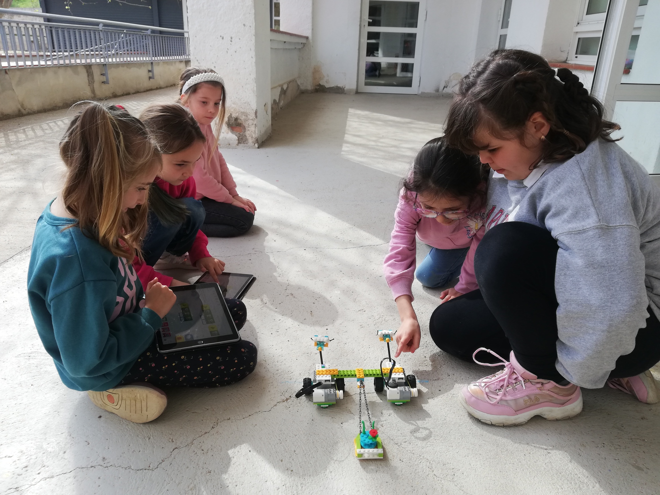Tots els dimarts a la tarda fem tallers de robòtica o de jocs de taula i escacs. El que fem és anar-nos tornant entre els grups de primària, durant unes setmanes fem robòtica i després fem jocs de taula i escacs. A robòtica fem diferents grups de treball per desenvolupar un projecte de recerca i investigació a partir de la construcció d’un robot i després fem una presentació davant la resta de la classe. Al taller de jocs de taula i escacs, aprenem a jugar a diferents jocs d’estratègia, com el Hive, l’Abalone, el Mind, els Escacs, etc.