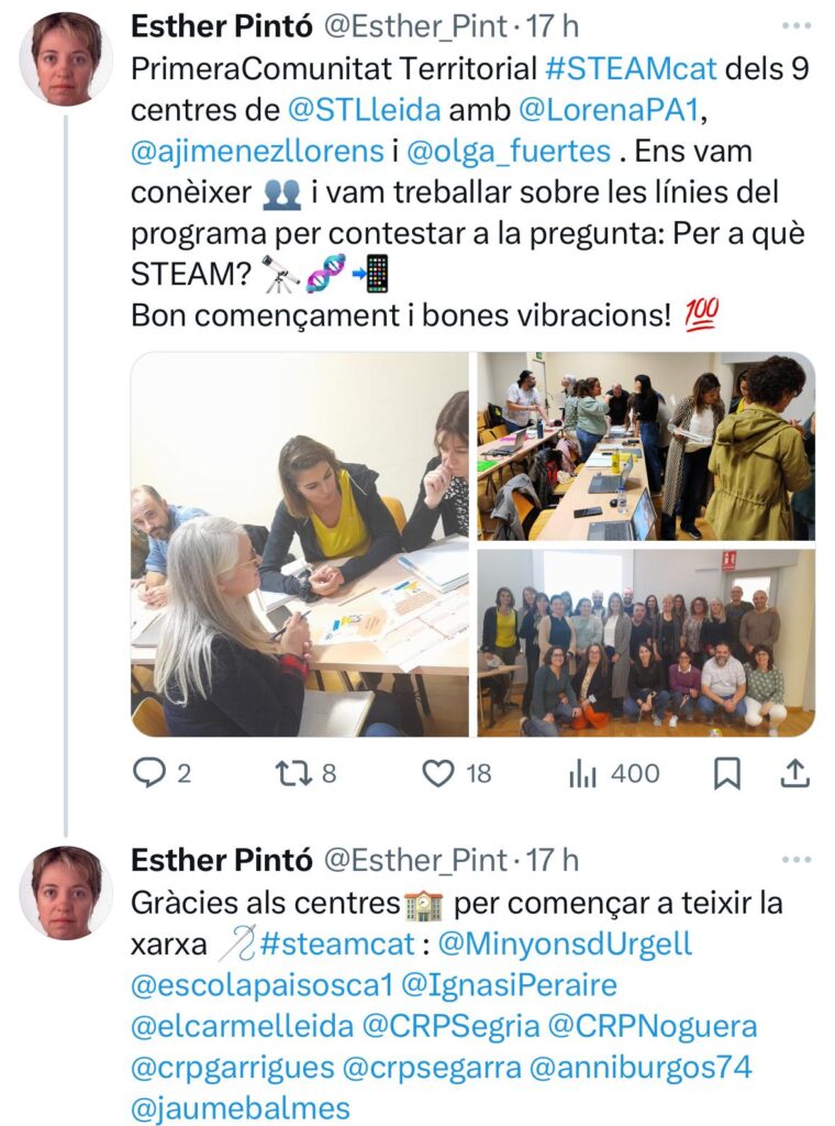Aquest dimecres 23/10 vam fer la primera trobada de Comunitats Territorials #STEAMcat 24-27 amb altres centres dels SSTT de Lleida que hi participen. Vam començar a teixir la xarxa i treballar sobre les línies del programa STEAM per a contestar la pregunta: Per a què STEAM? […]