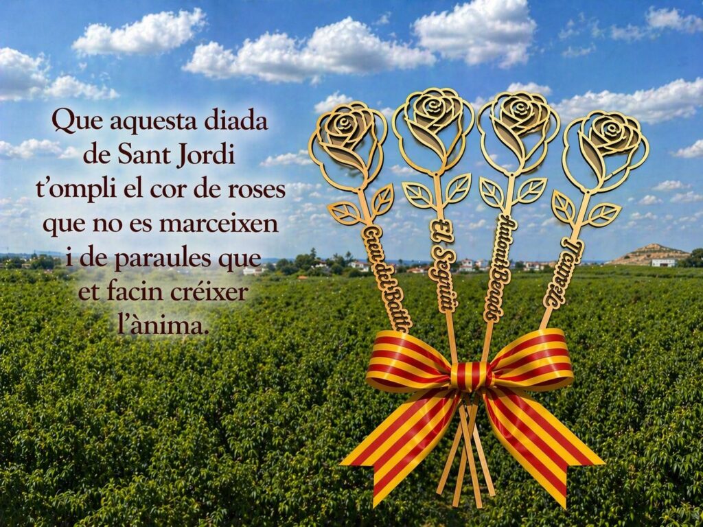 La comunitat de la ZER L’Horta de Lleida us desitja una bona diada de Sant Jordi! Aprofitem per explicar-vos que les roses de la imatge han estat elaborades amb la talladora làser dels nostres centres. (Dotació Programa Código Escuela 4.0).