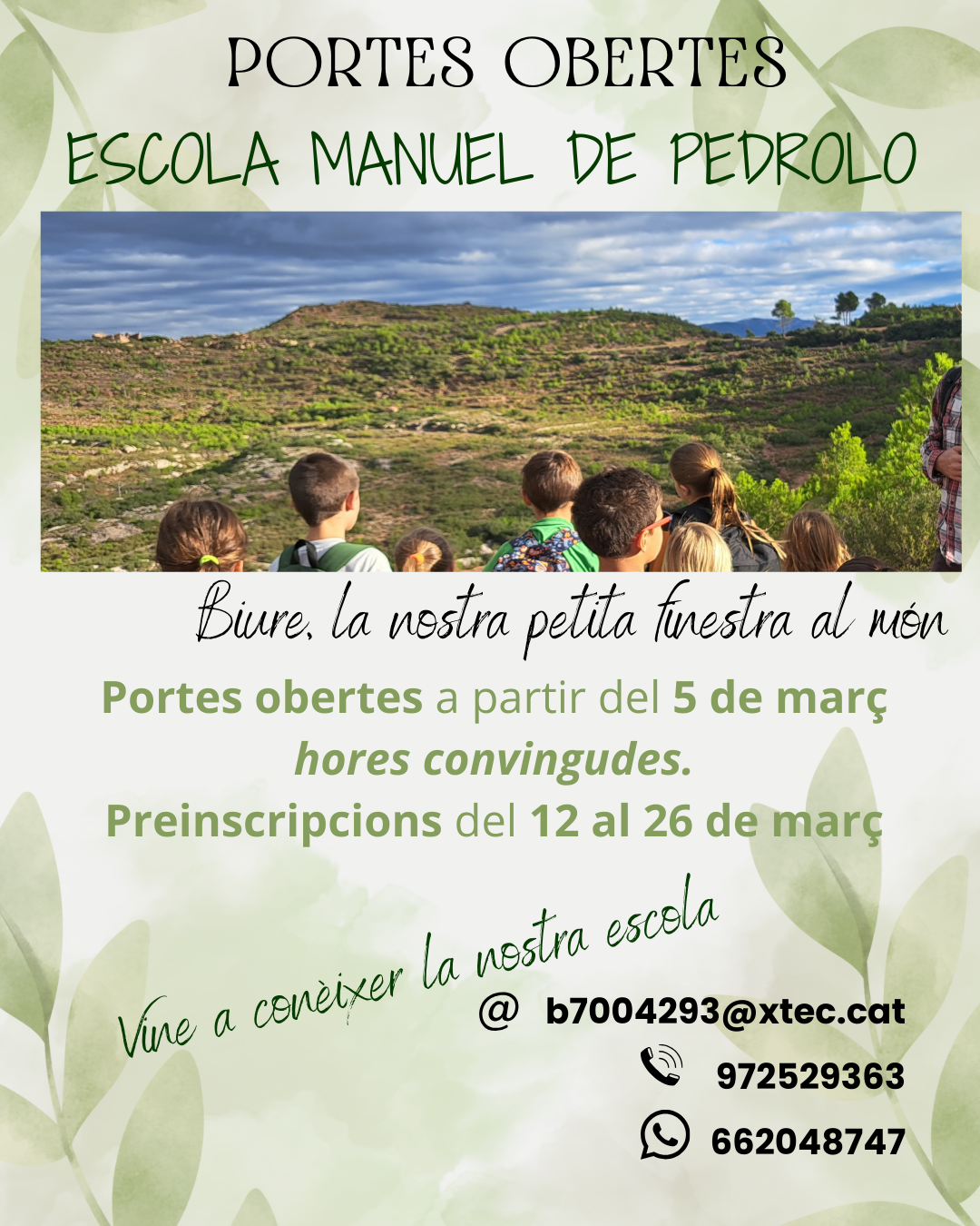 Vols venir a conèixer l’Escola de Biure? Durant el mes de març fem portes obertes a hores convingudes. Vine a conèixer el nostre projecte.