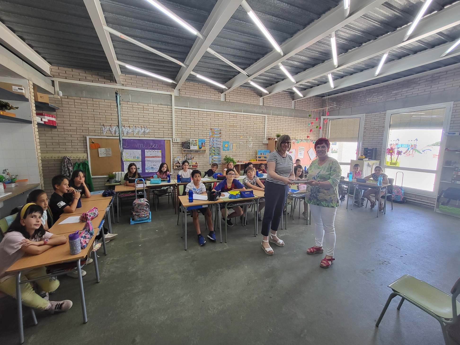 Destaquem que  Núria ens va fer una donació de llibres per a la nostra escola per a què tot l’alumnat pugui gaudir d’aquestes fonts de coneixement del nostre poble: