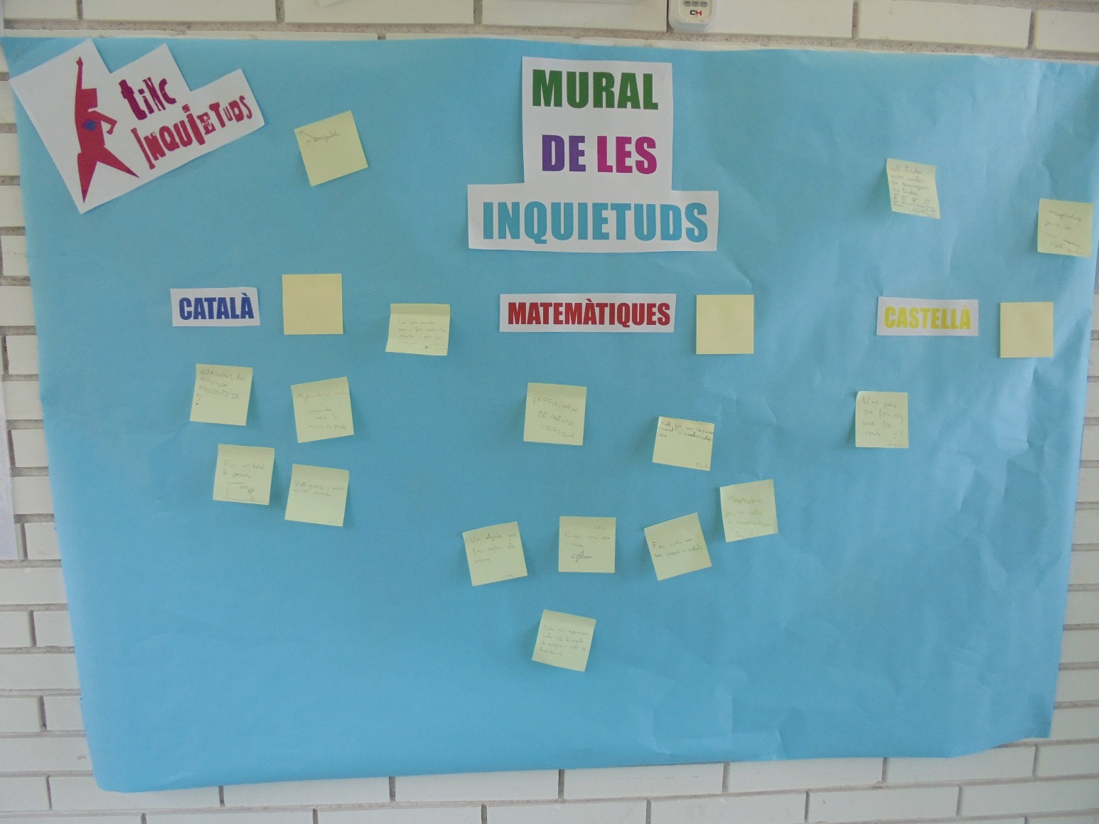 Aquest trimestre hem engegat el Mural de les Inquietuds. En ell, els alumnes anoten les inquietuds que els van sorgint en les diferents àrees: llengua castellana, llengua catalana i matemàtiques. Aquestes són introduïdes dintre de la programació i als alumnes els ha motivat molt.