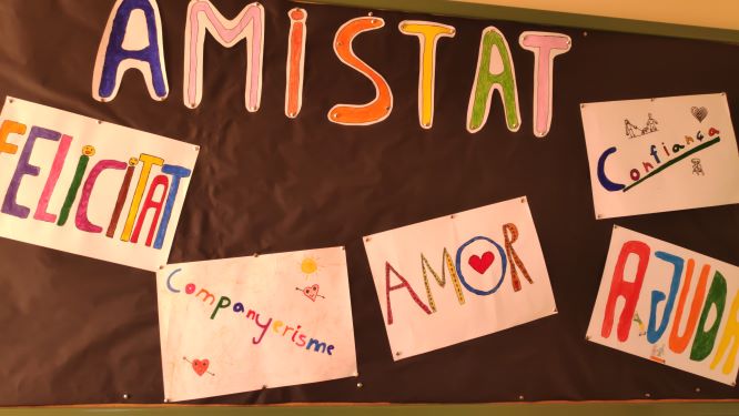 CI, CM i CS de l’escola Abat Ruera. L’amistat admin03/11/20 L’amistat és un valor molt important i per aquest motiu s’han realitzat algunes activitats conjuntes entre els alumnes de CI, CM i CS. Una d’elles ha estat elaborar un mural amb aquelles paraules que defineixen millor aquest valor.