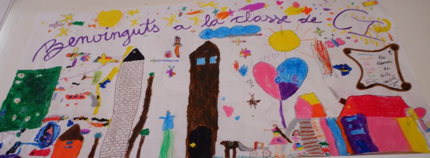En la classe de plàstica els alumnes han dibuixat un gran mural. Ha estat un mural totalment creatiu, on tots i totes han plasmat els dibuixos que han volgut, respectant les opinions dels companys/es. S’ho han passat molt i molt bé.