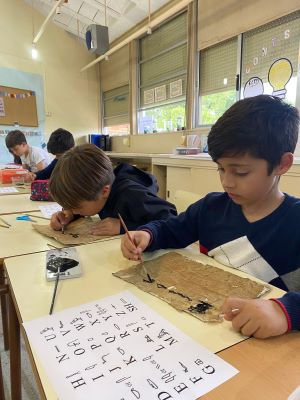 En aquest cas adaptem els materials per poder-ho fer a l’escola: aigua, cola blanca, gases i cafè. I a partir d’aquí podeu anar veient la màgia del procés i els jeroglífics que hem creat!