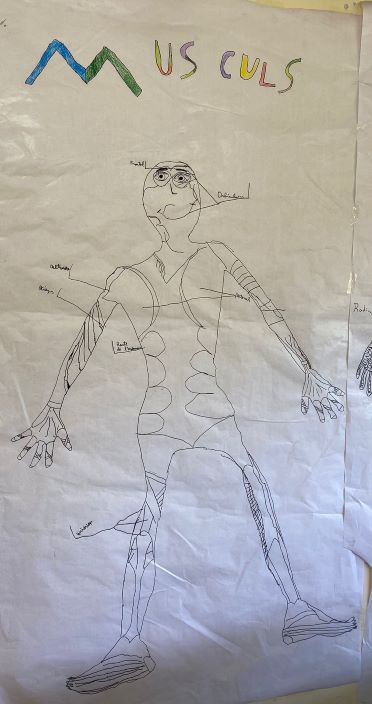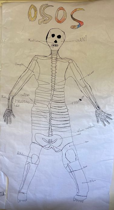 Els alumnes de CM de l’escola Abat Ruera estan treballant el cos humà. Una de les activitats dutes a terme ha estat dibuixar el contorn d’un company. L’han omplert amb els noms dels ossos i els músculs que han anat treballant a l’aula. Aquesta activitat s’ha fet en grup. Els murals s’han penjat a l’aula de CM/CS.