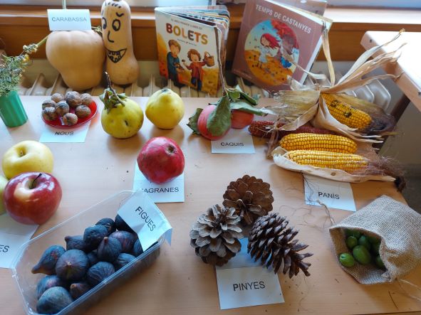 Aquest racó és el que queda després d’haver tocat, tastat, manipulat… els fruits i les fruites de la tardor que les famílies heu anat portant. També han vist que les fruites més madures s’han anat podrint i han fet cap al contenidor de reciclatge corresponent.