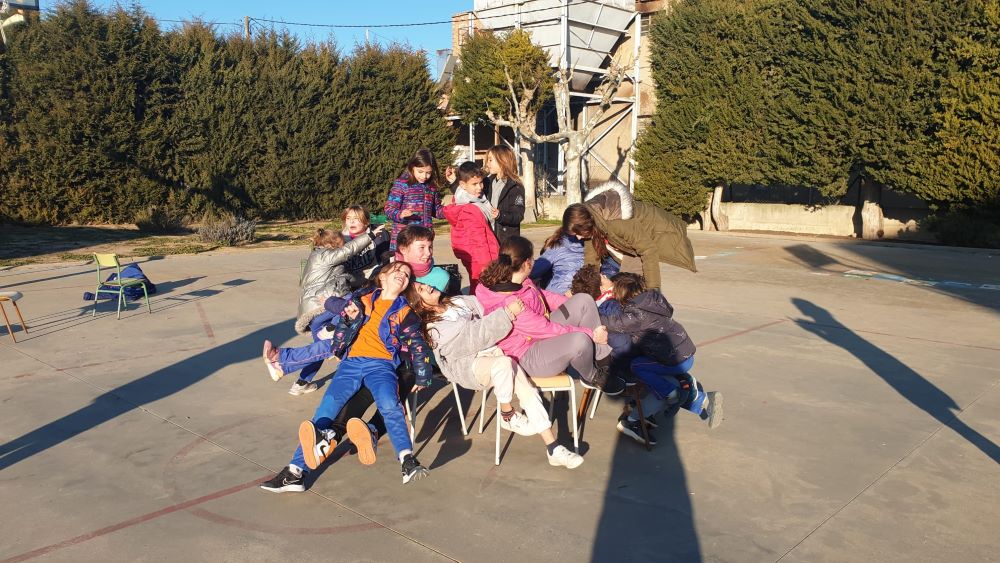 En la segona activitat vam jugar a dos jocs col·laboratius: el joc de les cadires i el de creuar el riu.