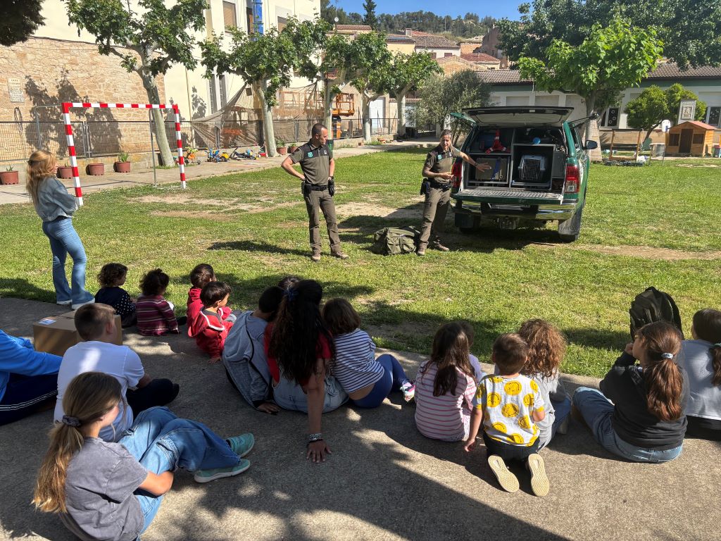 Els agents rurals van visitar la nostra escola per ensenyar als alumnes sobre la importància de cuidar el medi ambient i protegir la natura. Durant la visita, els agents van explicar les seves tasques diàries i com podem ajudar a conservar els espais naturals. Els nens van aprendre moltes coses interessants i van fer preguntes sobre els animals i les plantes. Aquesta experiència va ser molt enriquidora i va despertar l’interès dels estudiants per la natura. Estem molt contents de veure com els nostres alumnes s’interessen per protegir el nostre entorn!