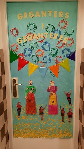 Finalment podem explicar-vos que hem acabat de decorar la porta de la nostra classe. Aquest any està relacionada amb el projecte interdisciplinari que estem treballant sobre les tradicions i la cultura catalana.