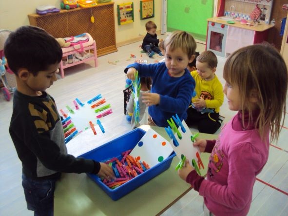 En aquesta activitat els alumnes de l’Escoleta han treballat la psicomotricitat fina i diferents conceptes matemàtics. Per grups han anat passant per tots els jocs proposats: enganxar agulles d’estendre roba seguint seriacions de colors, trobar l’agulla amb la xifra correcta segons el nombre de gomets i enganxar-la allí…