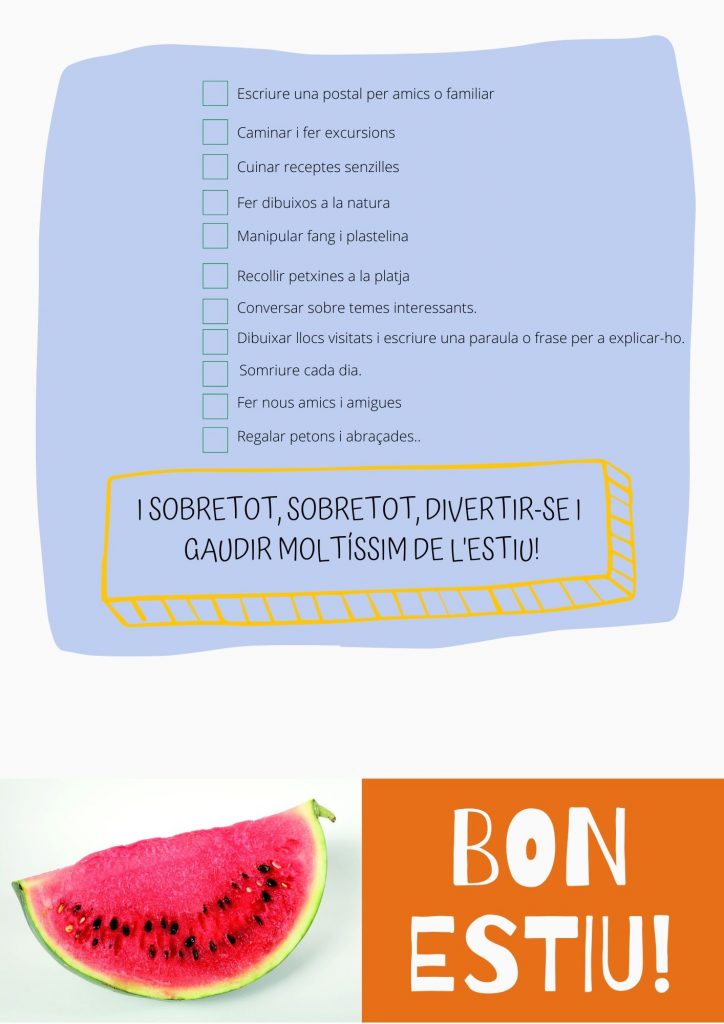 Si voleu imprimir els suggeriments per tal de posar tics a totes aquelles activitats realitzades, podeu descarregar-vos-els AQUÍ.