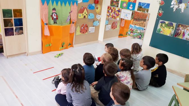Tallers a Educació Infantil de l’escola Abat Ruera: espectacle de titelles. admin05/05/21 Aquesta setmana entre tots i totes hem recordat la “Llegenda de Sant Jordi”. També hem explicat un altre conte clàssic: “La Caputxeta Vermella”. Sembla que estiguem en un espectacle de Festa Major!
