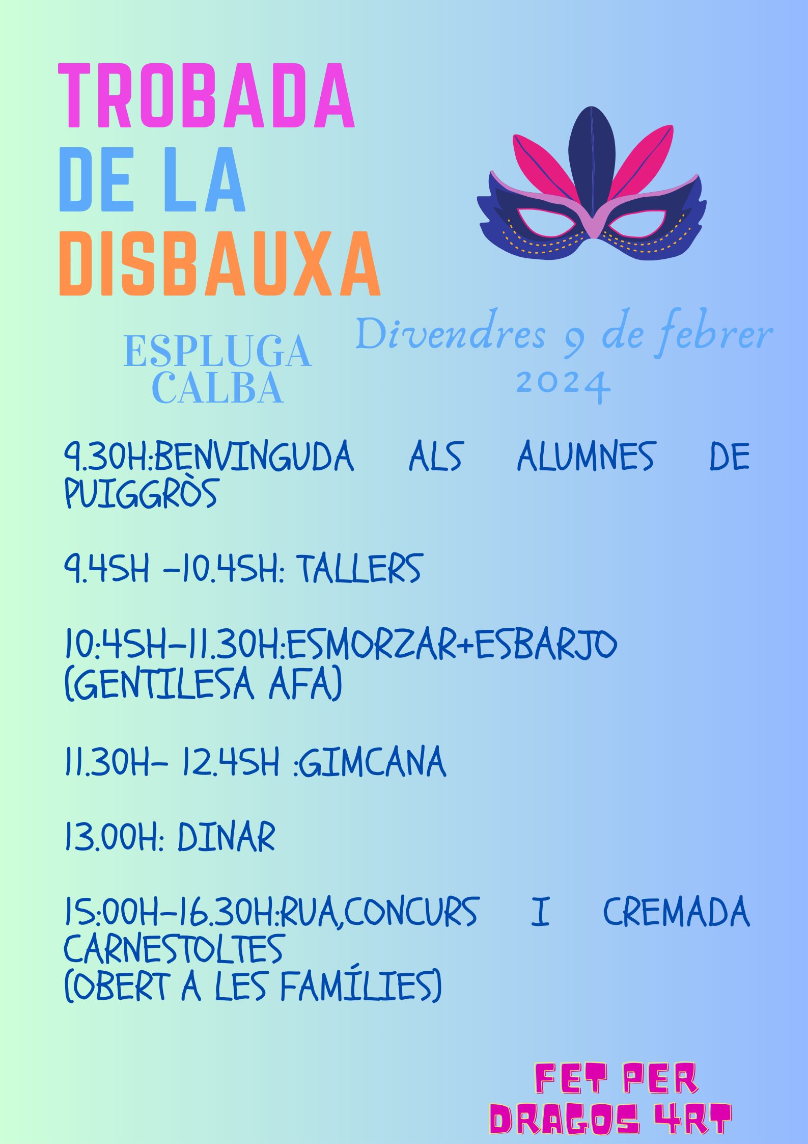 Us deixem el cartell informatiu per saber totes les activitats que hem preparat i els horaris.