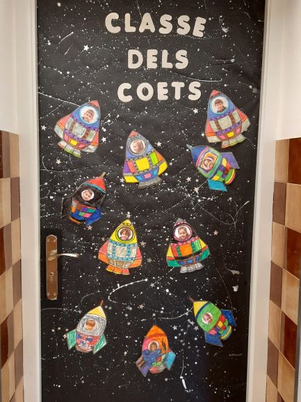 Per fi ja tenim decorades les nostres portes!!!. Els alumnes d’infantil i CI han decidit per votació ser la classe dels COETS i els de CM i CS la classe de les GALÀXIES. Aquests noms estan relacionats amb el treball que estem realitzant sobre el projecte de l’univers.