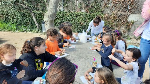 Divendres dia 31 de març va ser el darrer dia del segon trimestre, i com ja és costum a la nostra escola, aquest dia fem la mona. Primer de tot, vam anar a buscar a Cal Miquel, els ingredients que uns dies abans havíem anat a encomanar. Un cop ja els vam tenir a l’escola, per classes, vam guarnir dues mones. Vam tastar els ingredients, els vam posar en el pa de pessic i finalment vam decorar les nostres mones amb plomalls i ous. Un cop decorades, que per cert ens van quedar xulíssimes, ens les vam anar a menjar als Jardins Verge de Montserrat, on també vam gaudir d’una estona de jocs i cançons.