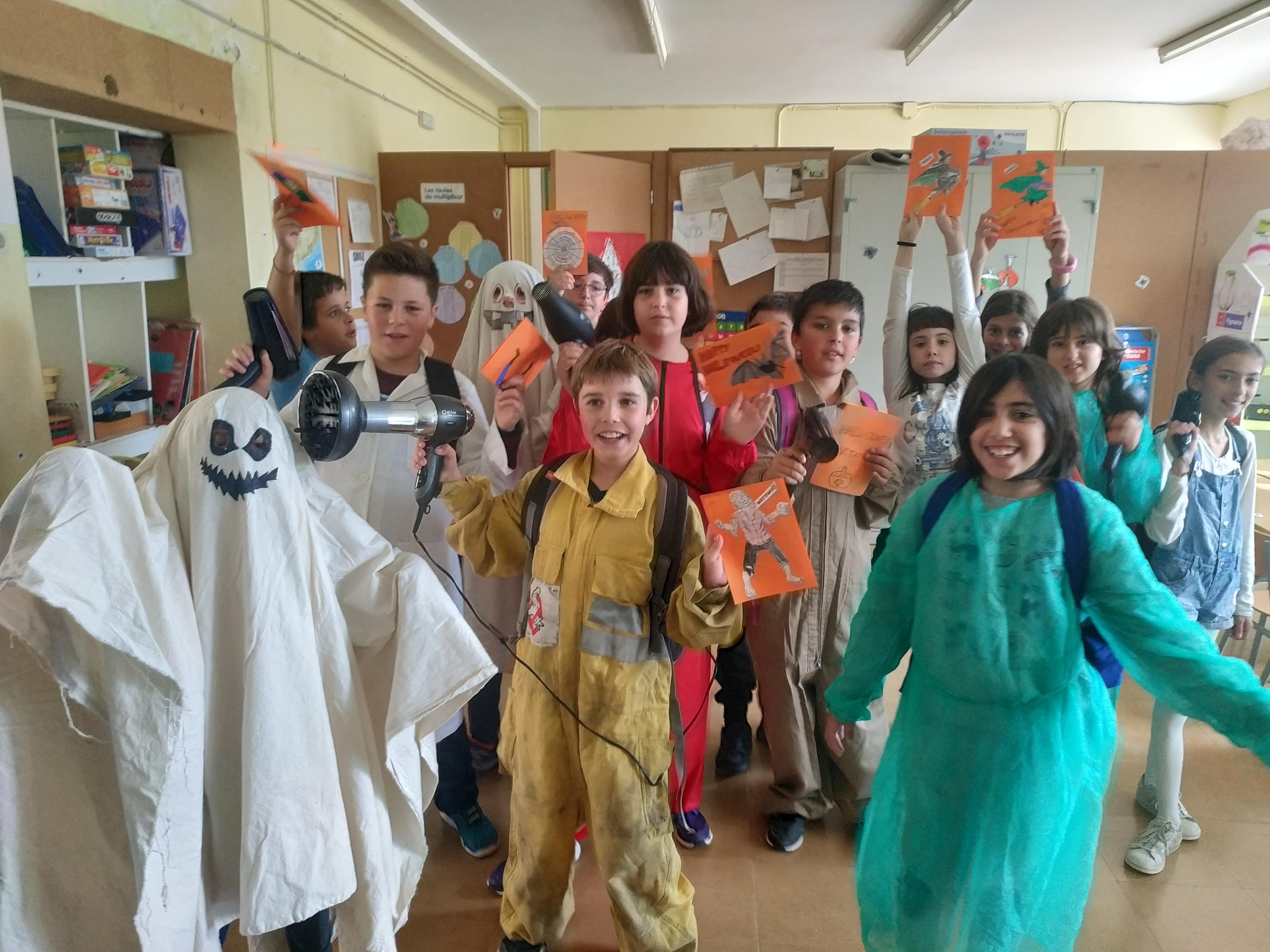 La setmana passada a l’àrea d’anglès en motiu de celebració del “Castaween” o millor dit Halloween… Pel matí ens vam disfressar de Ghostbusters per assajar la cançó/ball del festival de la Castanyada i vam acabar de fer unes invitacions de Halloween molt creatives i originals. La qual cosa podeu apreciar a la foto;