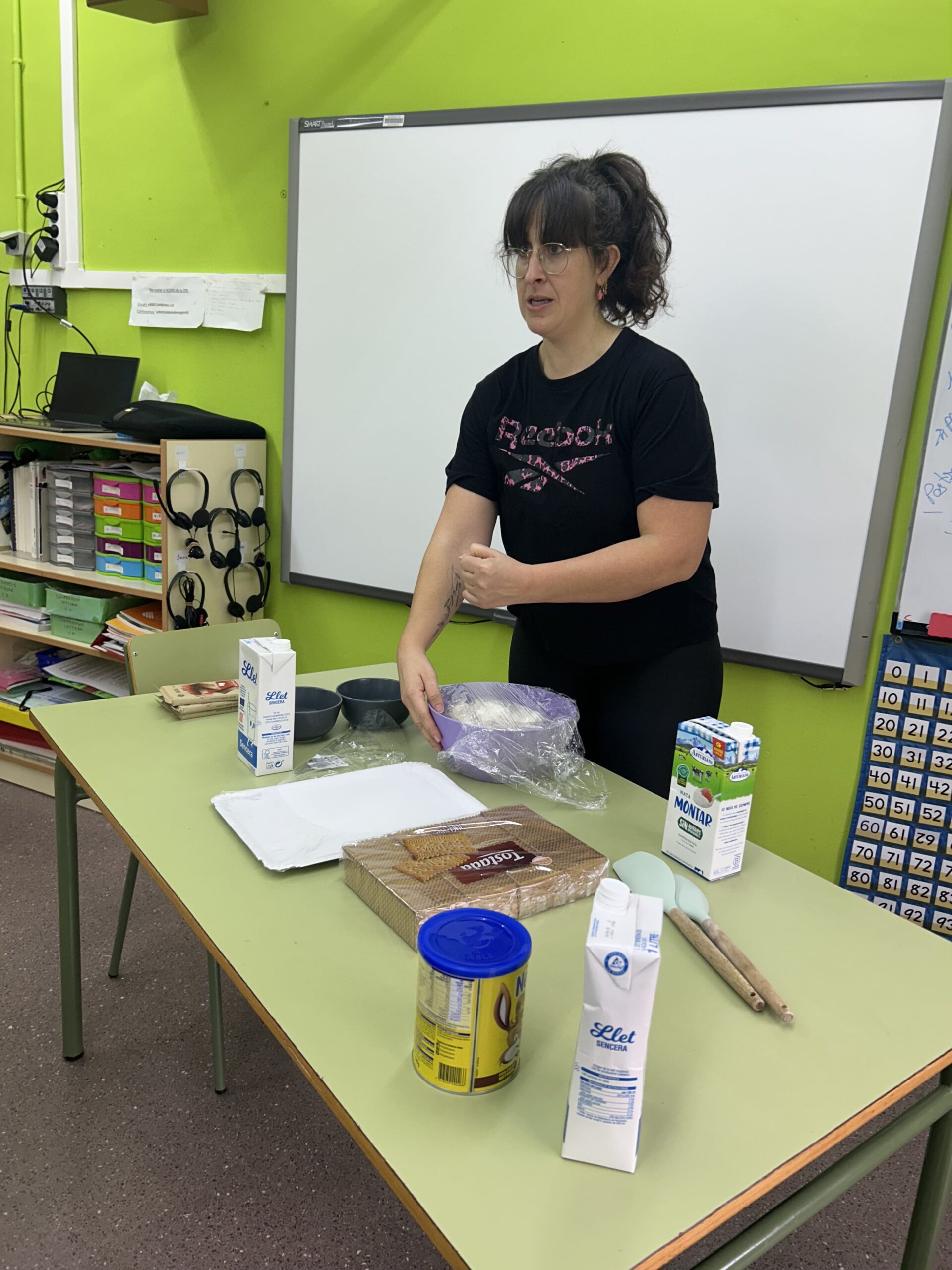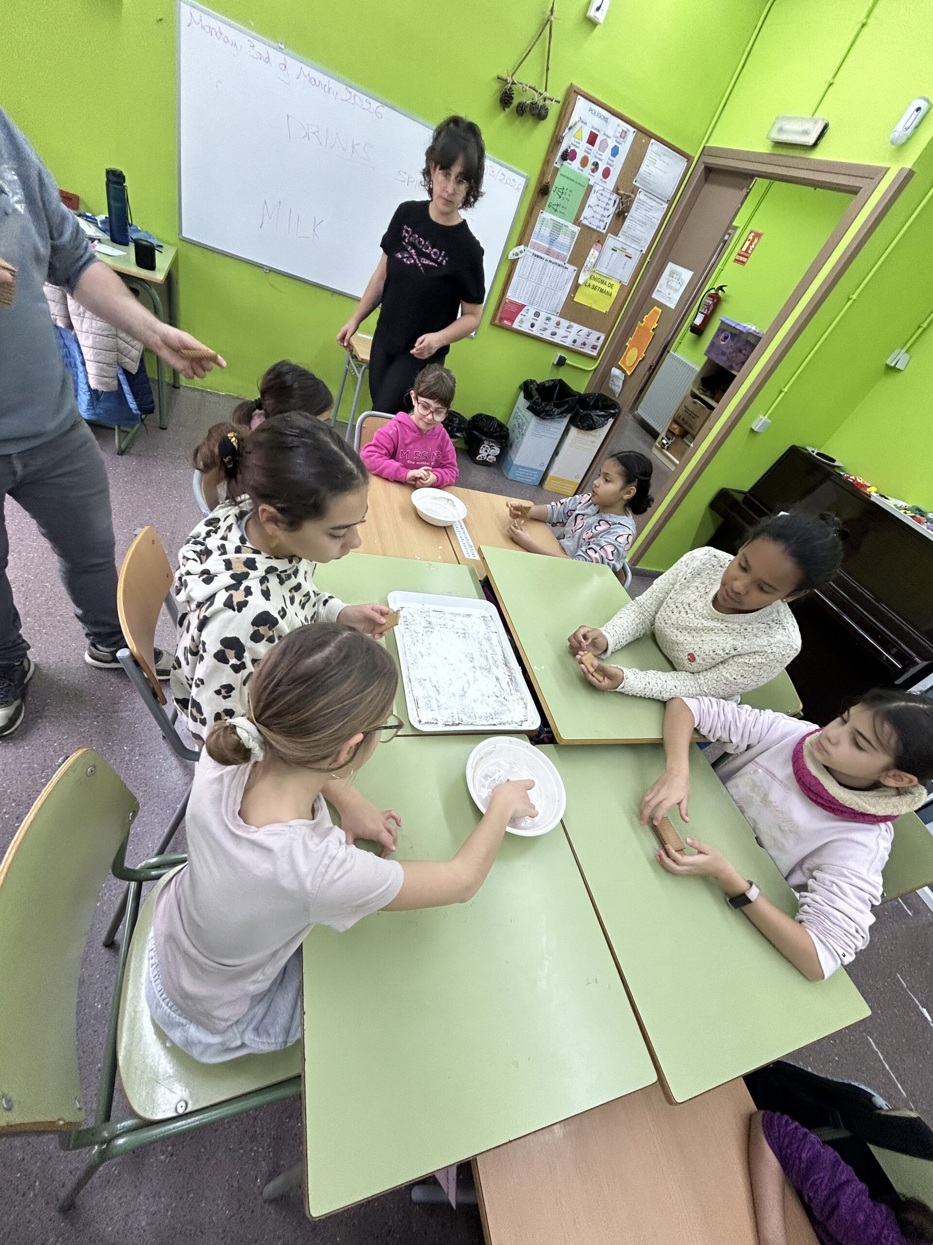 Avui hem portat a terme el primer taller de cuina amb lesfamílies, una experiència molt enriquidora i plena debonsmoments compartits. Pilar ens ha ensenyat com fer el “pastís del’àvia”, utilitzant ingredients bensenzills: nata, galeta, xocolate,llet i cacau.