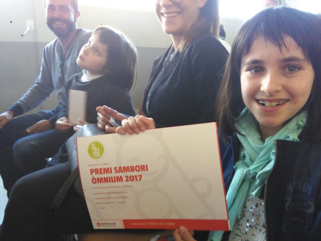 La nostra escola ha participat en el premi Sambori Òmnium, concurs de narrativa en català que vol difondre l’ús del català en un projecte comú per a tots els territoris de parla catalana. Un dels treballs, el de Laura Benaiges, ha guanyat el tercer premi del cicle mitjà de primària .L’entrega dels premis va ser