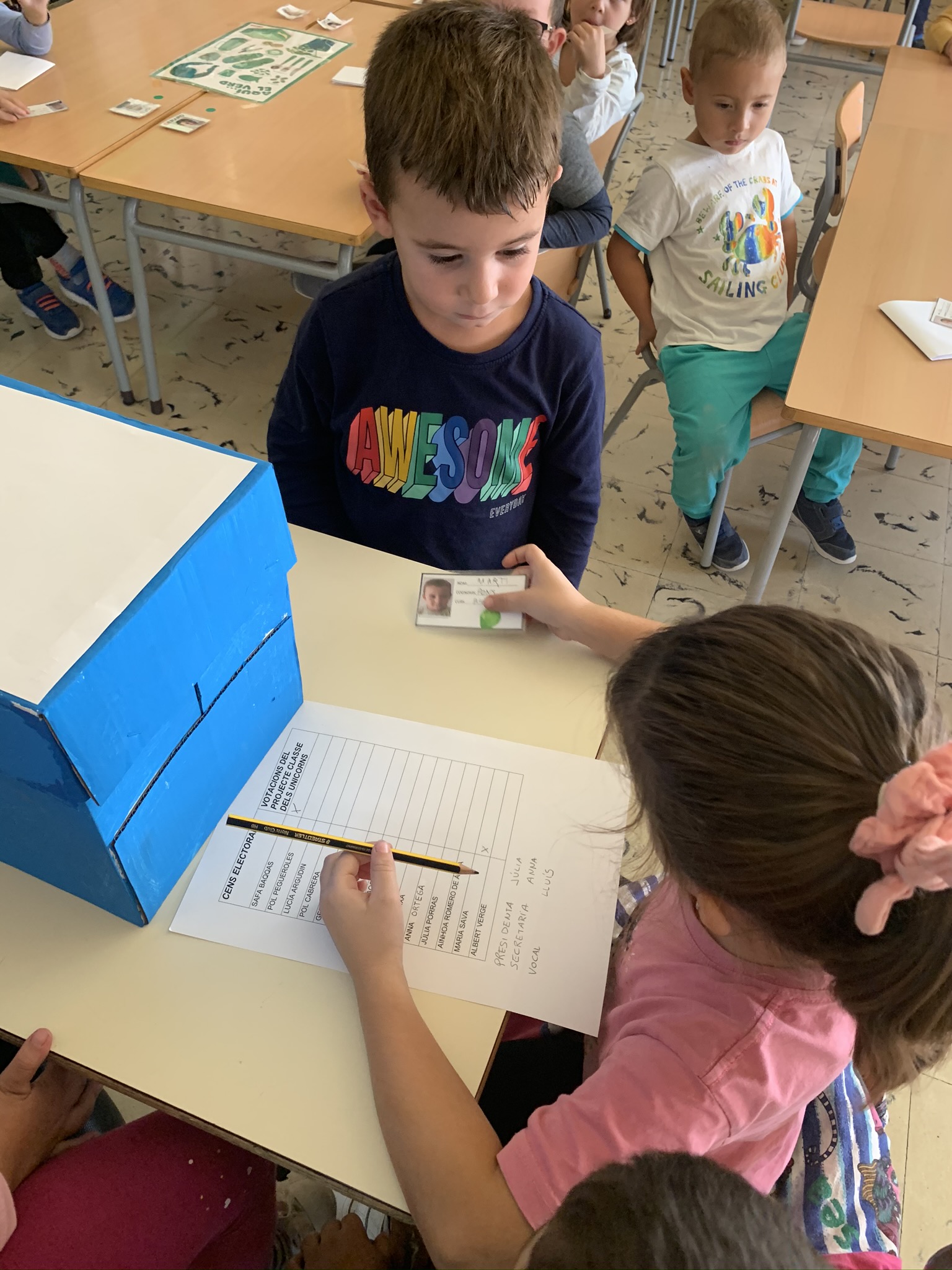 Per realitzar tot aquest procés prèviament ens vam informar de que eren unes eleccions i quins eren els passos a seguir. Vam realitzar un DNI, també vam fer un cens electoral de la classe, vam crear una urna i per últim vam escolir un/a president/a un/a vocal i un/a secretari/a. I així mentres apreníem que eren unes eleccions, vam escollir el nostre projecte: ELS SUPERHEROIS I LES SUPERHEROINES.