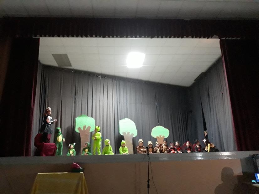 Vam realitzar 3 obres de teatre diferents: Infantil van representar “La cuca de llum”, CI i 3r “Final de curs” i CS i 4t ” Ni ofici ni benefici”.