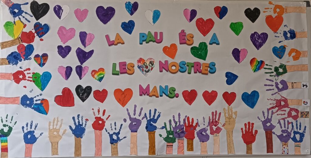 Durant la jornada del Dia Escolar de la No Violència i la Pau, l’alumnat va participar en diferents tallers relacionats amb la convivència i el respecte: vam fer mandales, taller de pinta-cares, de polseres i també un mural de la pau entre tots. Vam gaudir d’una activitat d’Acrosport on havíem de col·laborar els uns amb els altres amb respecte i tolerància.