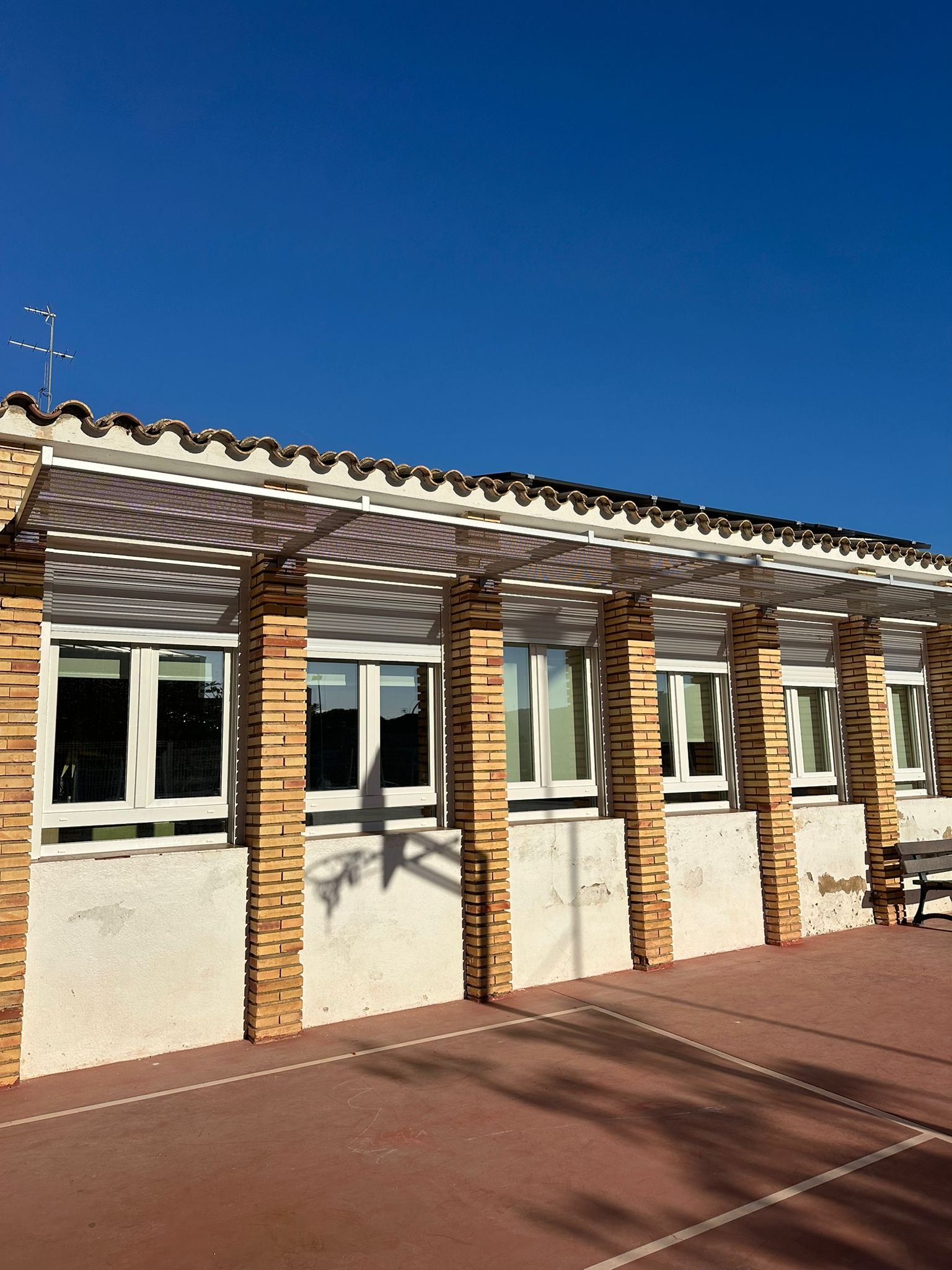 Durant el primer trimestre la nostra escola ha estat en obres per tal de millorar els espais i fer-los més eficients i confortables per a tothom. Al llarg d’aquestes setmanes s’han canviat totes les finestres, els vitralls i les portes exteriors del centre. A més, s’han instal·lat plaques solars a la teulada i protectors solars a les finestres per reduir l’entrada de calor i aprofitar millor la llum natural.