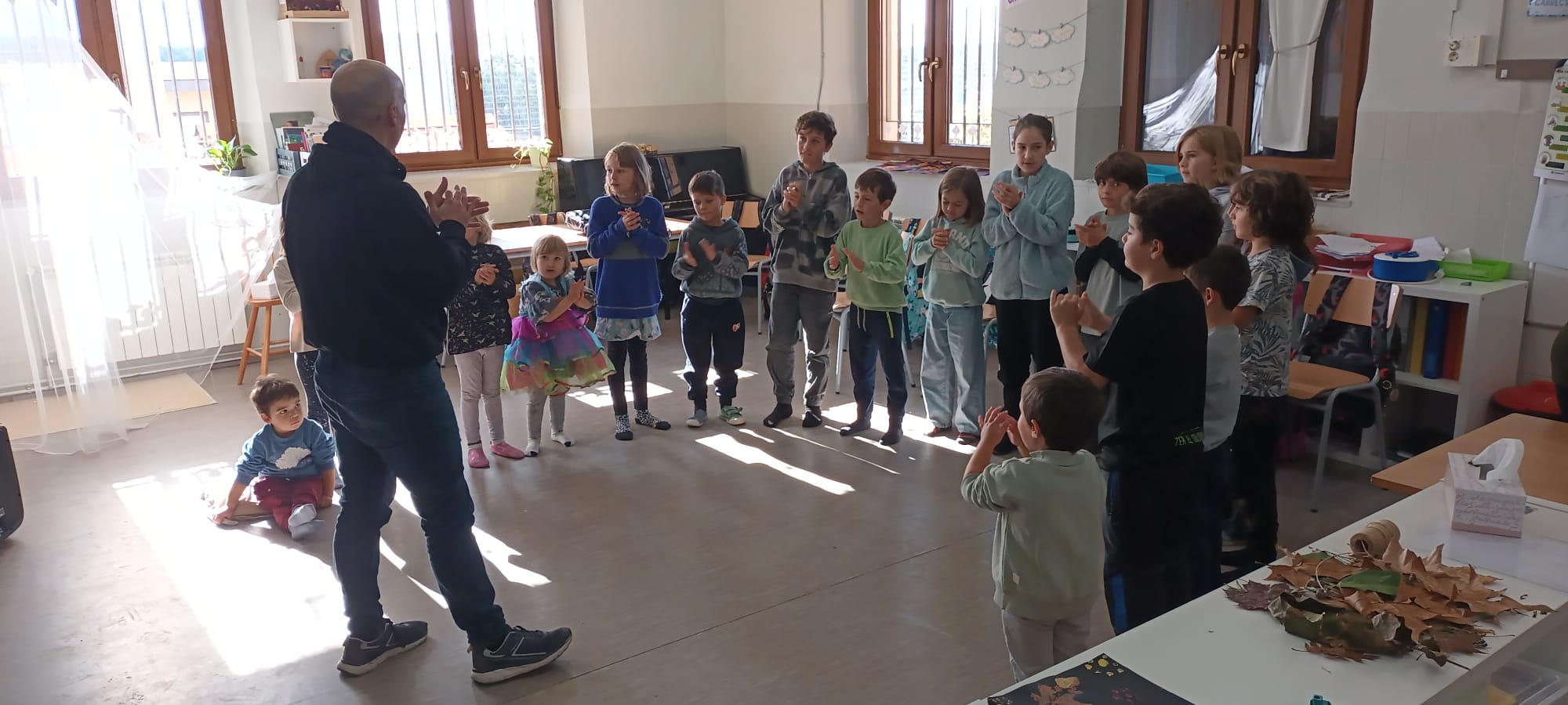 A principis de novembre els nens i nenes de l’escola de Lladurs vam tenir la visita de l’Ivan ,de l’escola de música l’Àtic, que ens va venir a fer un taller de percussió corporal.