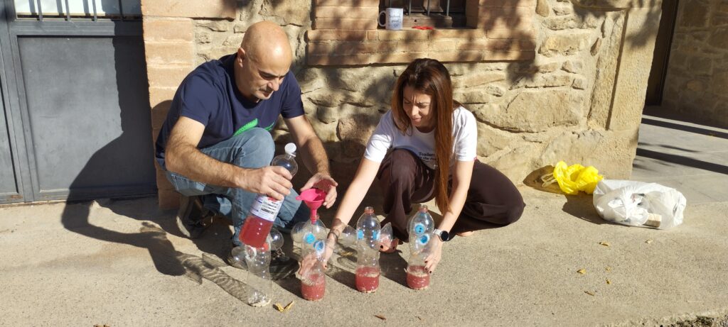 Un cop acabada l’explicació, va col·locar 4 trampes per a les vespes.