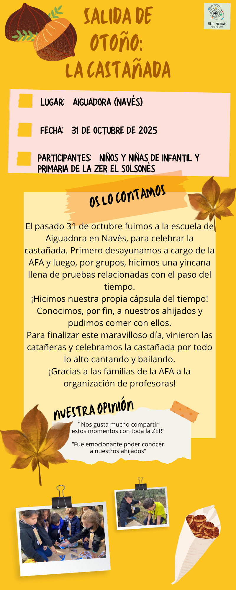24/11/22 El dia 9 de novembre infants i docents de la ZER El Solsonès ens vam reunir a Navès per fer la trobada de tardor.