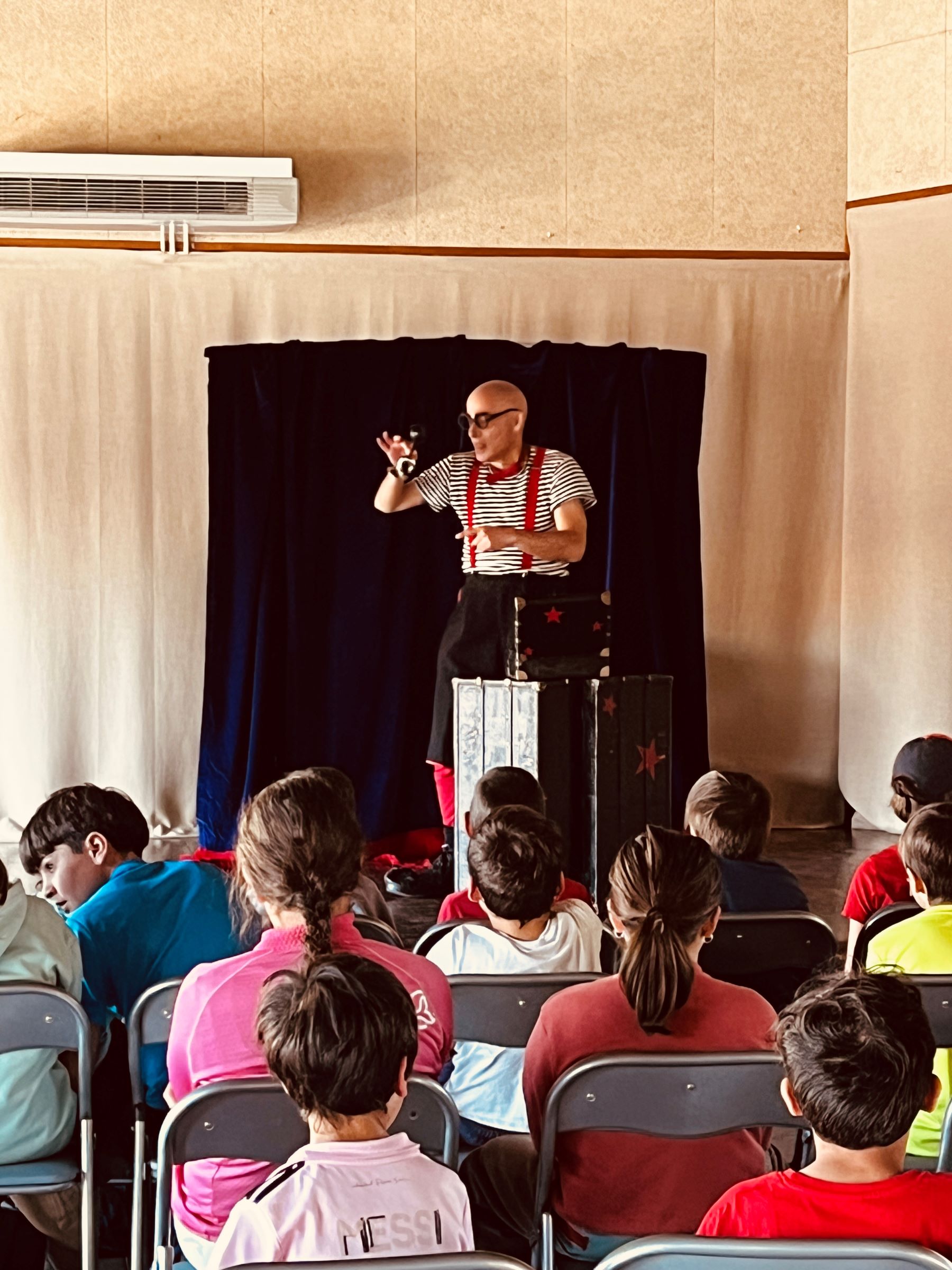 L’espectacle realitzat íntegrament en anglès, es va adaptar als diferents nivells educatius amb dues propostes ben diferenciades. Per una banda, els infants d’educació infantil i cicle inicial van gaudir de It’s Magic, una actuació amb màgia, pallassades i moments participatius que van captar la seva atenció des del primer moment. Amb molt d’humor, el pallasso va aconseguir crear un ambient de sorpresa constant, fent-los protagonistes de l’experiència.