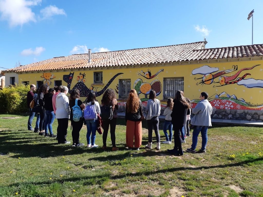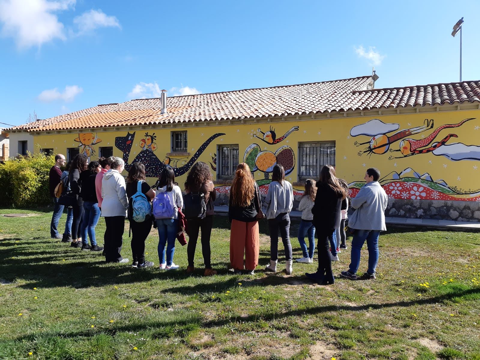 Finalment, el dia va arribar, es va convidar a les famílies perquè participessin en la creació del mural i vam dedicar tot el matí a fer-lo. El Valentí guiava a l’alumnat sobre què i com havien de pintar i ell hi va acabar de donar el seu toc tan característic.