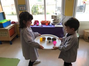 Ahir a l’hora de joc simbòlic vam estrenar el nou espai de Casal Vilanovenc amb cafeteria inclosa, mentre per grups juguem a jocs de taula hi ha dos encarregats que fan les tasques de cambrers, amb la qual cosa anoten la comanda en una llibreta, preparen la comanda en una safata i serveixen les taules.