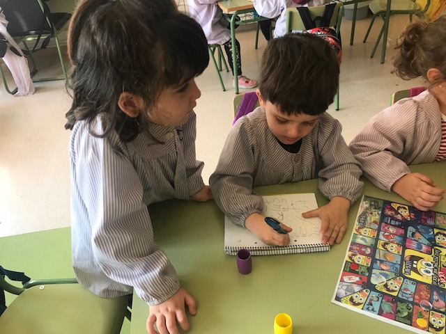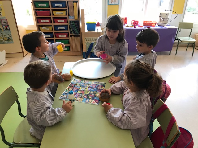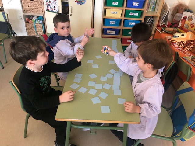 Ahir a l’hora de joc simbòlic vam estrenar el nou espai de Casal Vilanovenc amb cafeteria inclosa, mentre per grups juguem a jocs de taula hi ha dos encarregats que fan les tasques de cambrers, amb la qual cosa anoten la comanda en una llibreta, preparen la comanda en una safata i serveixen les taules.
