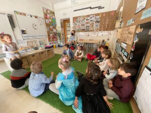 Avui la Júlia ha estat la protagonista de la 1a ronda de la Roda dels contes, ho ha encetat amb la narració dels Músics de Bremen.  Juntament amb la família ens han preparat uns titelles molt bonics per acompanyar l’explicació.
