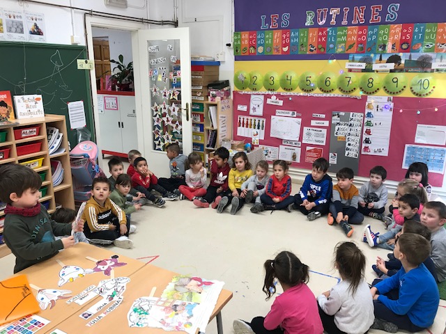 Aquesta vegada el Marcel ha escollit el conte de les set cabretes i el llop i per organització del centre el dia que li tocava fer-ho el va explicar a tot Educació Infantil. Ens va sorprendre amb la preparació d’uns titelles que el van ajudar a fer una bona explicació i millor comprensió.