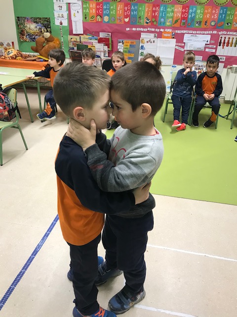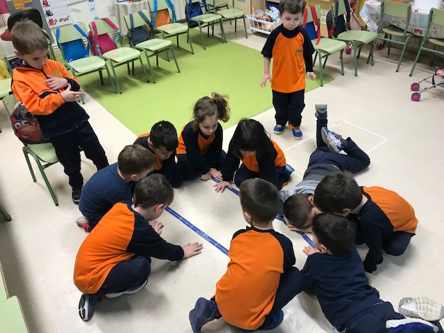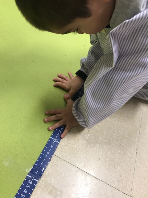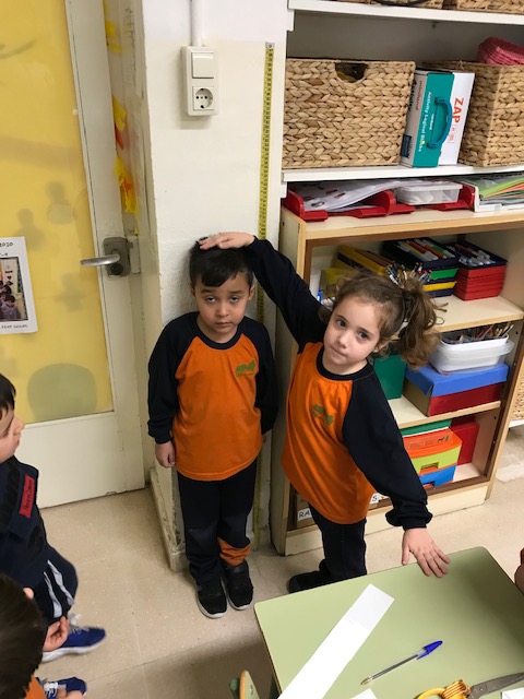 En aquell moment va venir a la nostra classe dos alumnes de cicle superior, i ells els van explicar que per poder mesurar correctament havíem de posar les cintes amb línia recta. I ells mateixos ens van ajudar.