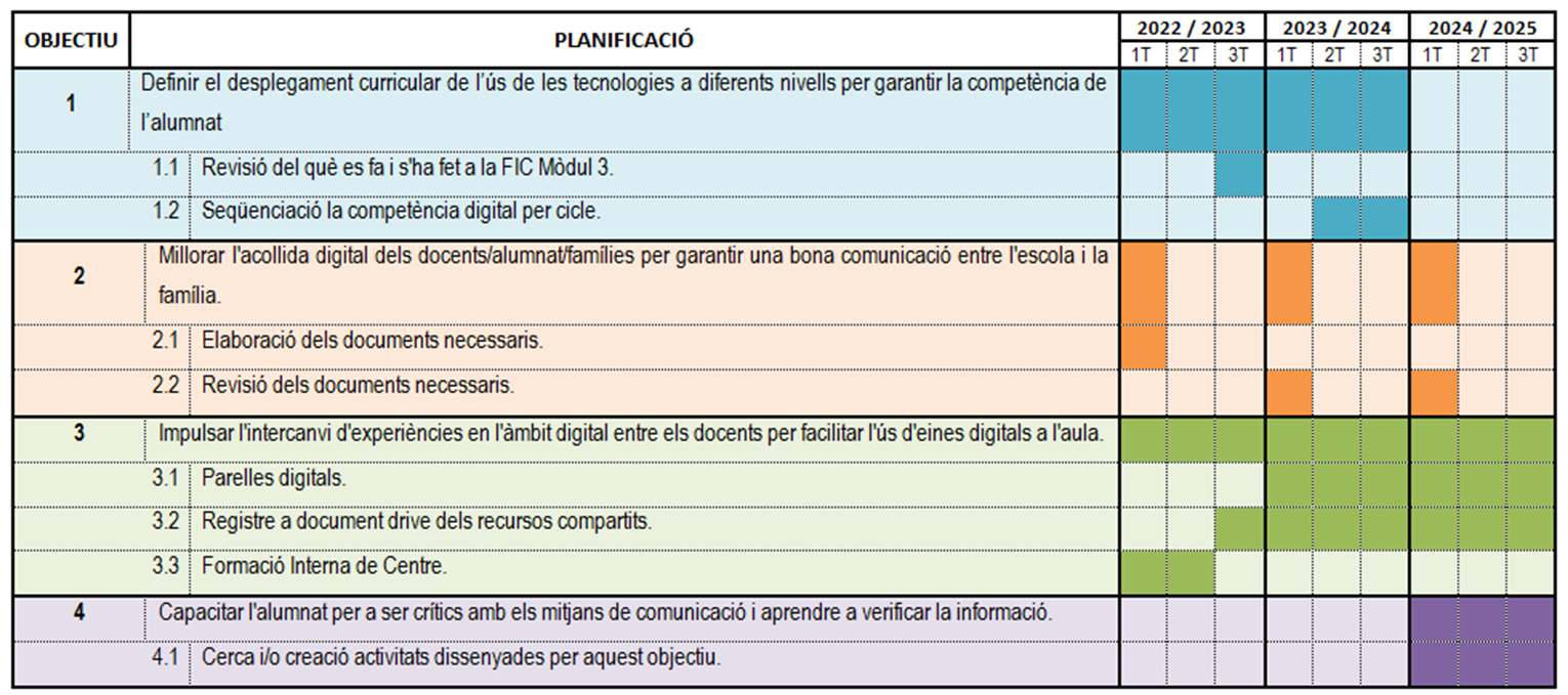 La planificació dels objectius és la següent: